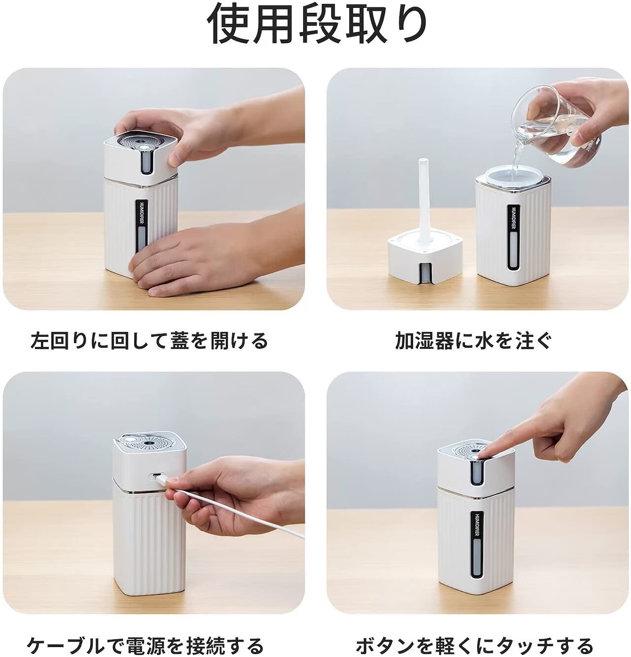 コンパクトサイズで持ち運ぶことの出来るUSB充電式ワイヤレス加湿器