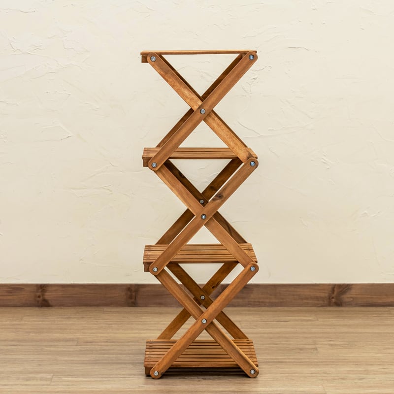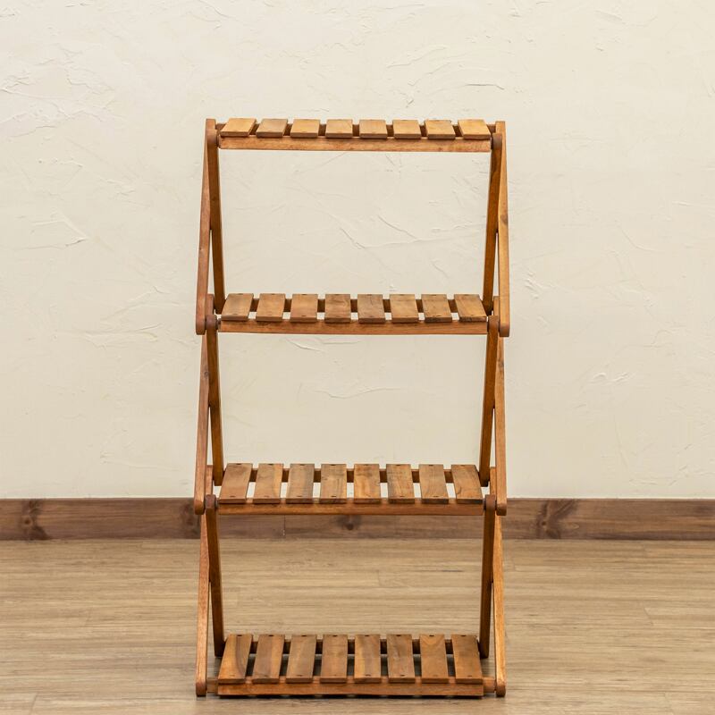 屋内外を問わず使えるマルチラック アカシア 折り畳みラック 4段 46.5cm幅