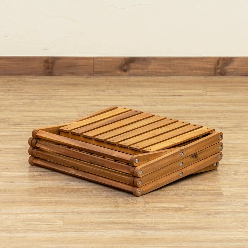 アカシア材を使用しており、耐久性が高く、長くご愛用いただける品質です。自然な風合いを持ち、インテリアに美しく調和します。また、屋外での使用でも腐食や劣化に強く、安心です。
